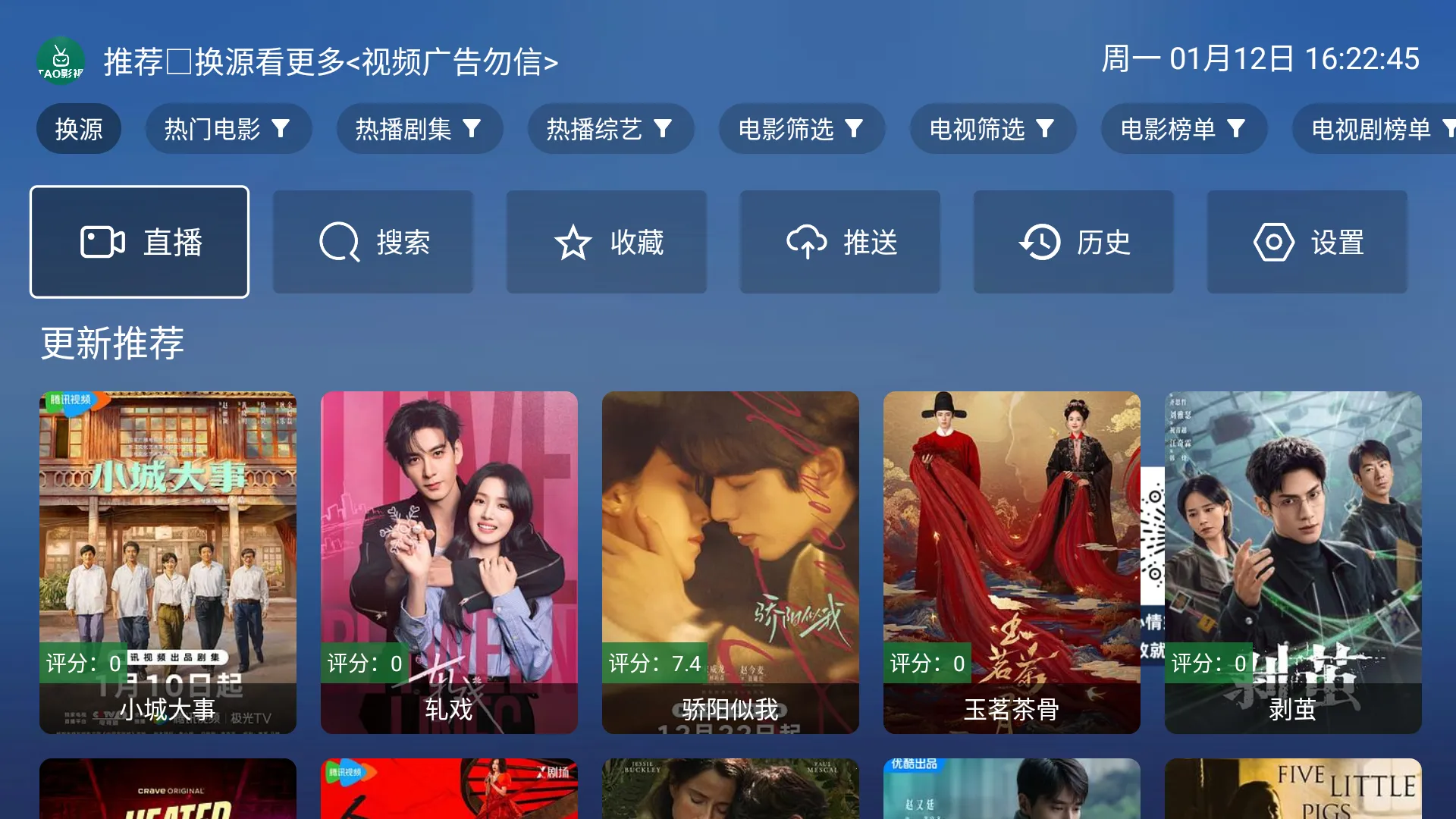 tao影视电视盒子是一款免费无广告、支持会员自由观看的影视软件,提供下载离线观看功能,可定制和切换电影,具备详细分类浏览和精准搜索功能,支持多种播放清晰度,界面简洁操作方便,拥有强大的搜索及收藏功能,自动记录观看历史,提供个性化设置,满足用户多样化的观影需求。
