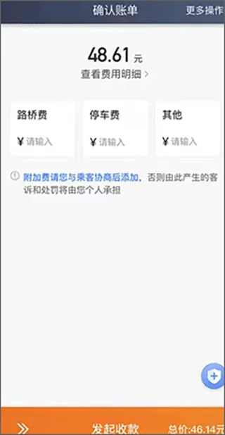 4、成功将乘客送达目的地后,即可确认账单发起收款。