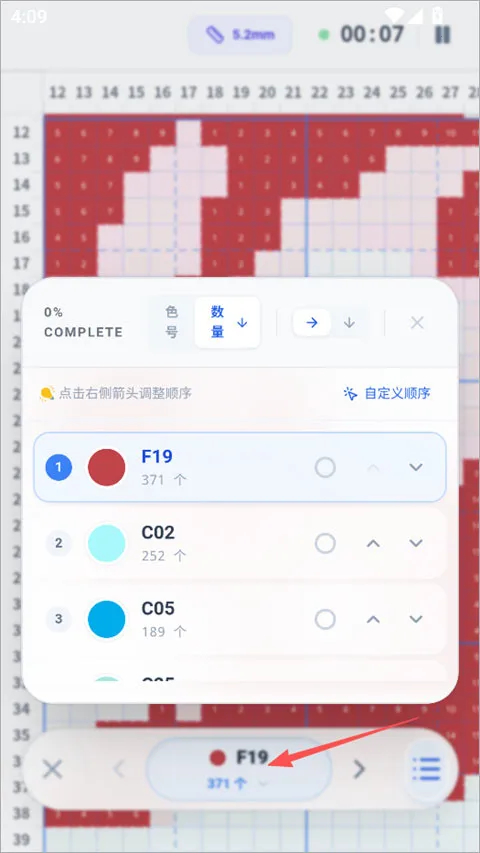 5、拼豆完成后,自动统计消耗的豆子数量和颜色