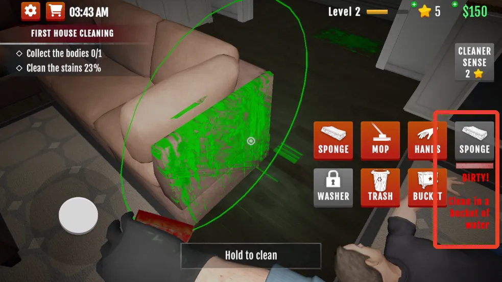 2、工具丰富实用:有拖把、海绵、高压清洗机等多样工具,能应对不同场景,高效清理血迹处理尸体。