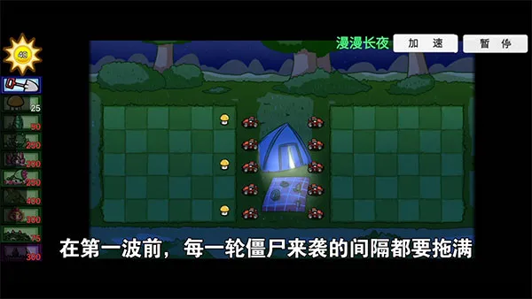 2、接着在第一波前,每一轮僵尸来袭的间隔都要拖满。