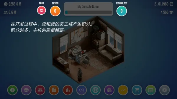 3. 全面经营体验:能建立自己的游戏机帝国,从1980年开始,经历设计、推出产品,进行推广销售,上新游戏,成立公司,还有办公室管理、员工开发等一系列经营环节。