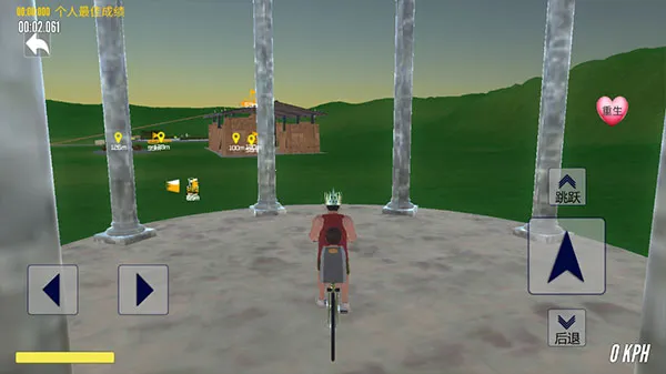 5、玩家的目标就是驾驶自行车到达黄色光标的位置,即目的地。