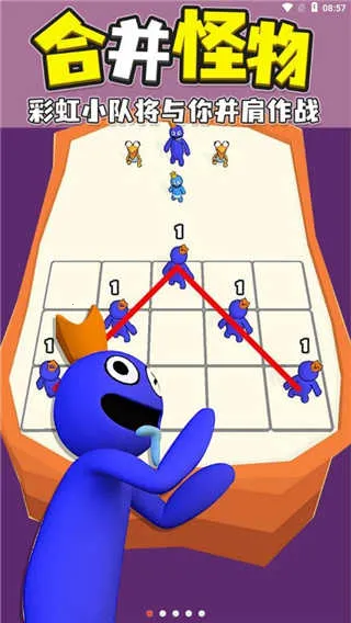 彩虹朋友合并怪物是一款超有趣的休闲益智手游,能满足你对策略合成和轻度竞技的需求。游戏里,你可以通过拖拽匹配进化彩虹怪物,组建专属军团。它支持单人闯关与多人协作双模式,适配不同玩家偏好。战斗目标简单清晰,击败全部敌方单位就能获胜。所有怪物都能合成实现属性跃升,成长路径一目了然。海量关卡持续解锁,每关有独特地形和敌人配置。游戏优势明显,内置超百种差异化任务,合成还影响技能形态与战场站位。玩法上,在六宫格战场部署初始彩虹朋友,相邻同色怪物可自动合成进阶。每次合成成功解锁新卡牌,积累金币能买指定彩虹朋友、升级卡牌技能。在这里,你既能掌控全局战局,又能主导怪物进化,轻松享受游戏乐趣,快来试试吧!