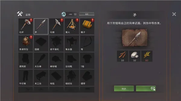 3、工具一栏有各种装备图鉴以及需要制作的材料,在末日生存下尽可能的制作更多的工具。